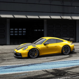 Racing at first sight. TECHART presents the lightweight carbon program for the Porsche 911 GT3 and the 911 GT3 with Touring Package – available from summer 2022. Carbon fiber fenders, 15 millimeter wider wheel arches, an aerodynamic front lid in carbon fiber and extensive styling refinements to the front and rear ensure a sharper appearance. The new TECHART Formula VII forged wheel is also available for the 911 Carrera GTS.