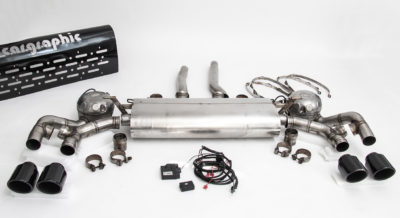 £2,503.62(Prices may be subject to change)(Inc. VAT)Excludes Shipping costs CARGRAPHIC Active SoundSport Rear Silencer for– Porsche 958.2 Cayenne Diesel 3,0l V6– Porsche 958.2 Cayenne S Diesel 4,2l V8with 2 Active Sound Generator and4x 100mm tailpipes – Gloss-Black enamelled Read more -